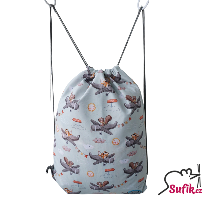 Batoh na šňůrky A4 veverka v letadleskladem 2 ks285 Kč/ ks