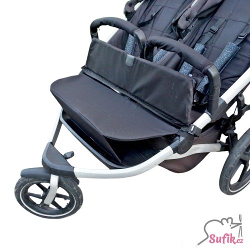 Zvedání nohou do kočárku pro dvojčata, jedna dlouhá deska pro obě děti.